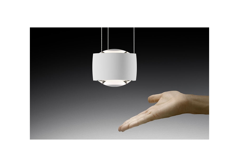 Sento diseñada por Occhio es una lámpara de suspensión de altura regulable o fija con 2 o 3 difusores LED fabricados en aluminio, plástico, vidrio y plástico óptico con base plana para montar en caja subterránea o base alta con fuente de alimentación incluida. Regulable mediante "control sin contacto" o mediante Occhio air. Disponible en diferentes acabados y modelos.