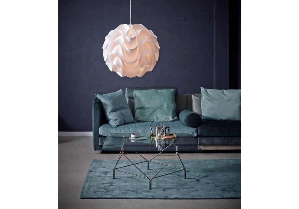 172 diseñada por Poul Christiansen para Le Klint es una lámpara de suspensión completamente estructurada en material plástico. La pantalla tiene forma esférica mientras que la superficie está adornada con pliegues que simulan un movimiento ondulatorio. La fuente de luz utilizada es LED o halógena (no suministrada) alimentada por un cable revestido de material plástico blanco. 172 está disponible en diferentes tamaños.