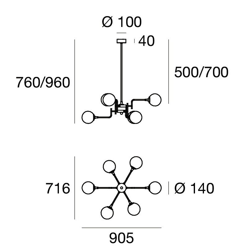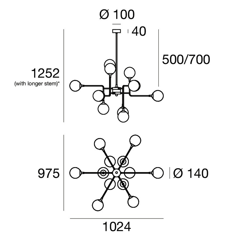 Galassia diseñada y producida por Stilnovo es una lámpara LED de suspensión con estructura de soporte en latón tubular tratado con un proceso galvánico. Los difusores son esféricos en cristal triplex blanco. Galaxy está disponible en dos tamaños diferentes.