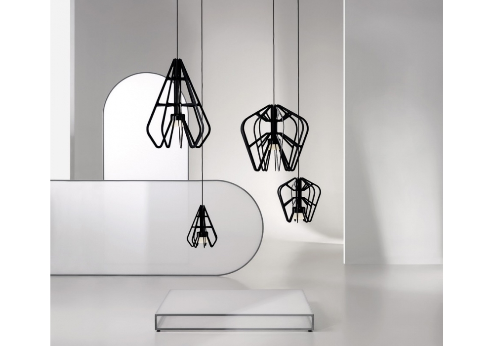 Exo diseñada por Rowan Turnham y Matthew Harding para Rakumba es una lámpara de suspensión realizada en aluminio anodizado, en acabados dorado o negro. Disponible en dos versiones y dos tamaños.