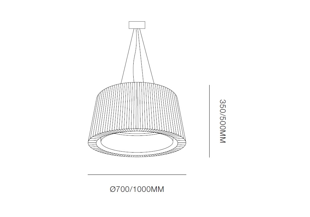 Iris diseñada por Rakumba es una lámpara de suspensión con estructura en acero pintado en polvo, exterior con pliegues en tejido negro. Forro interior en tejido, disponible en diferentes acabados.