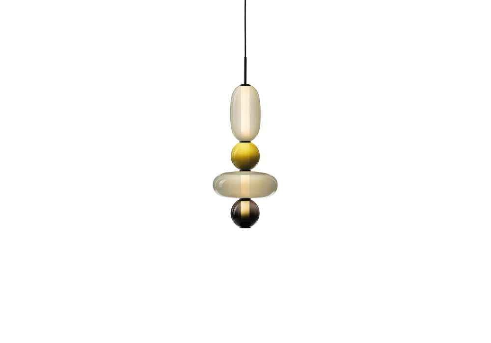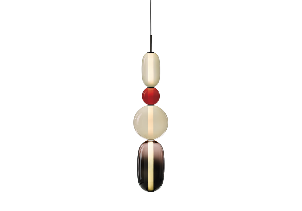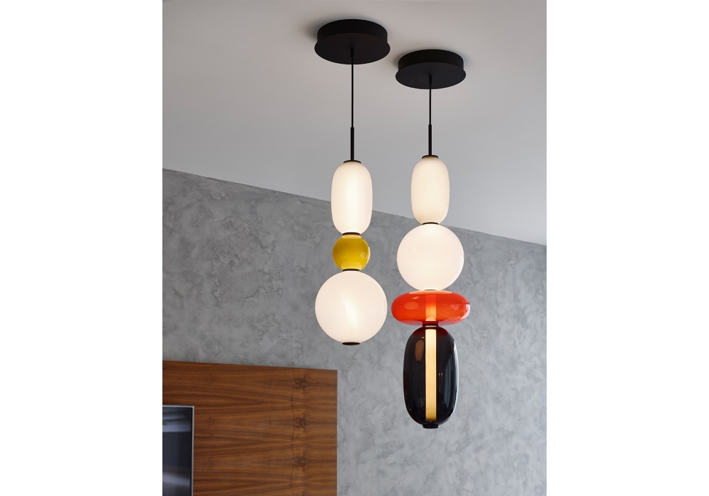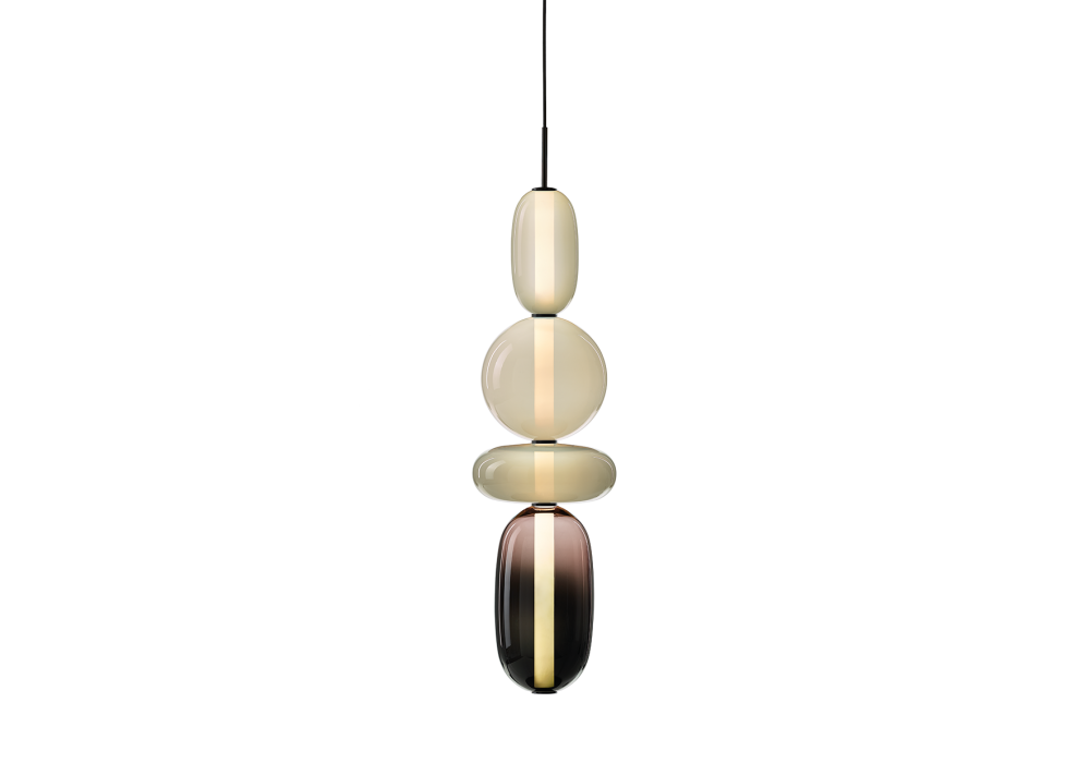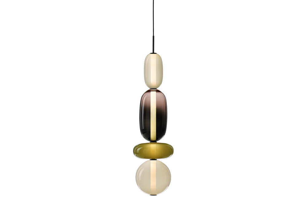 Pebbles diseñada por Boris Klimek para Bomma es una lámpara de suspensión realizada a mano en cristal soplado artesanalmente. Está disponible en diferentes configuraciones y acabados.