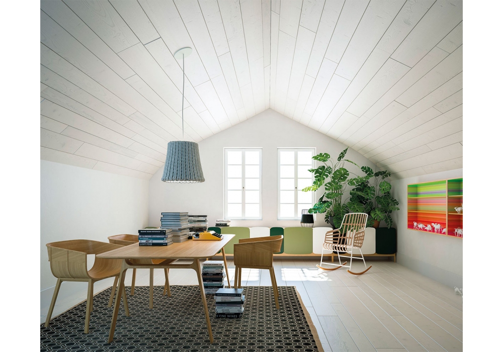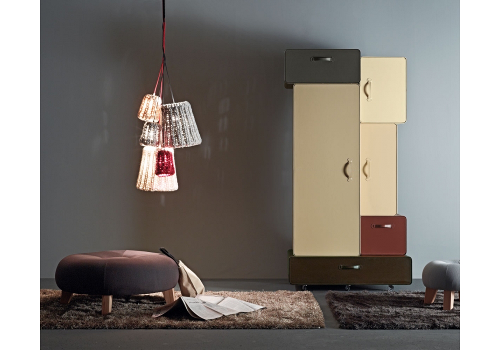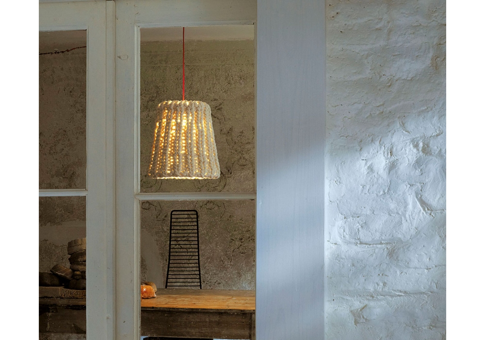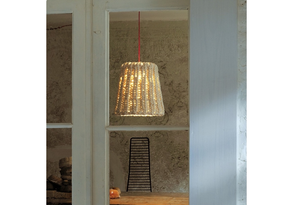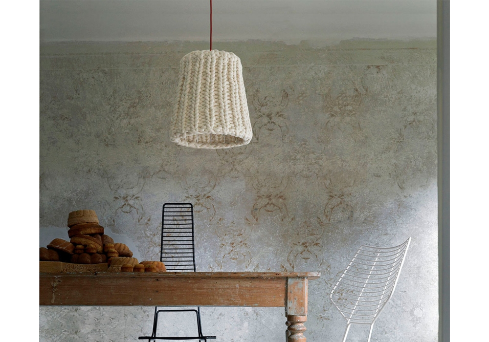 Granny diseñada por Pudelskern para Casamania & Horm es una lámpara de suspensión realizada con pantalla con grandes hilos de lana tejidos a mano. A la lana se le aplica un tratamiento natural anti-polillas y antiácaros. Disponible en diferentes acabados y dimensiones.