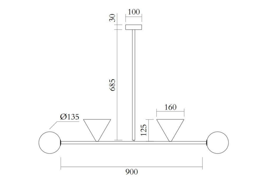 Balancing Variations diseñada por Atelier Areti es una lámpara de suspensión realizada en latón cepillado, conos de metal pintado de negro y esfera de cristal blanco.