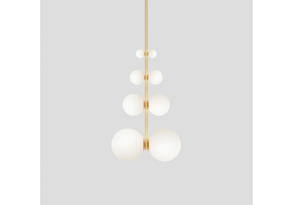 Perspective diseñada por Atelier Areti es una lámpara de suspensión realizada en latón cepillado y difusor de cristal blanco. Disponible en dos modelos.