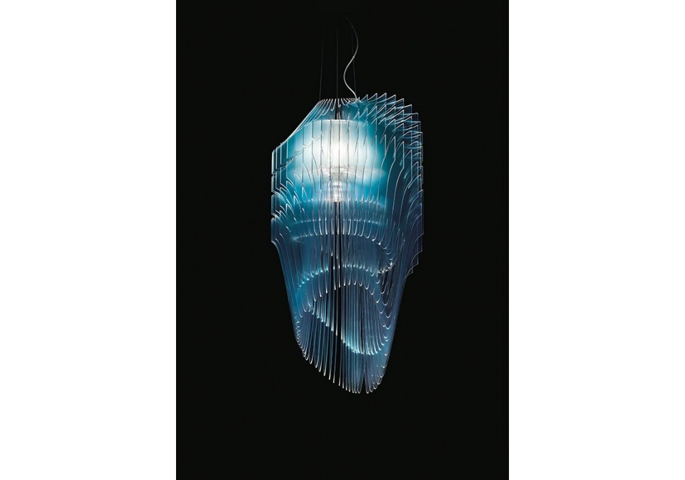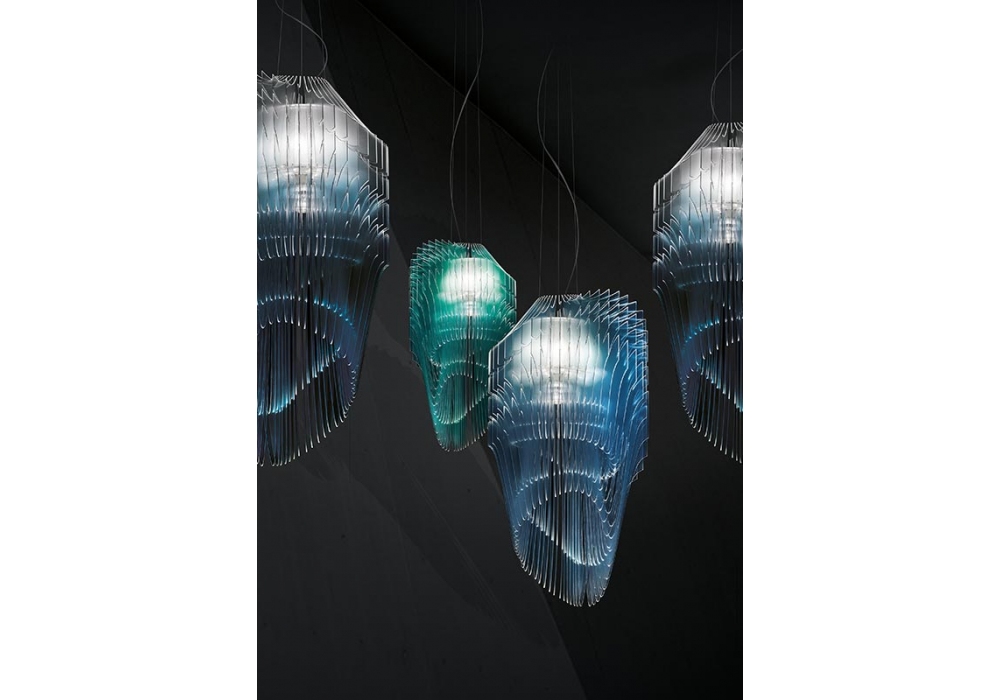 Avia Edition diseñada por Zaha Hadid para Slamp es una lámpara de suspensión circular con estructura portante de metal. El difusor se enriquece con varios elementos en Cristalflex® o Lentiflex® y fuentes de luz LED regulables de pantalla. Avia Edition está disponible en diferentes acabados.