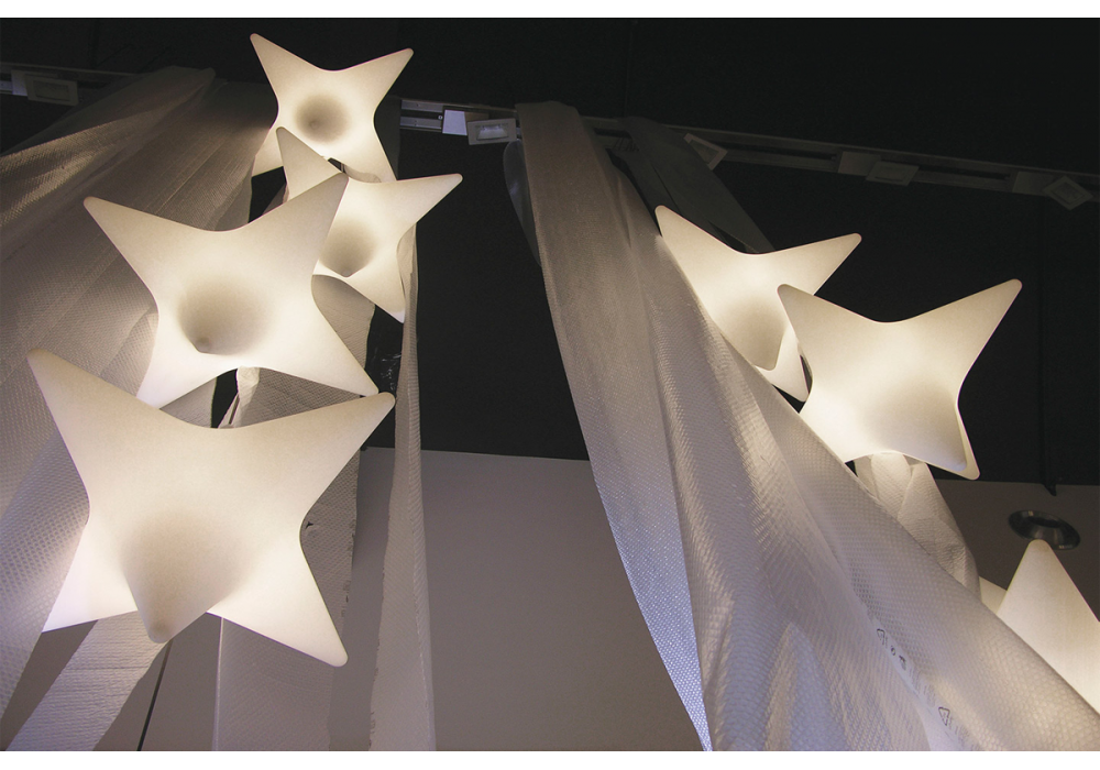 Sirio diseñada por Giò Colonna Romano para Slide es una lámpara de suspensión en forma de estrella luminosa de seis puntas. Sirio se produce en polietileno con la técnica de rotomoldeo. Disponible en diferentes versiones.