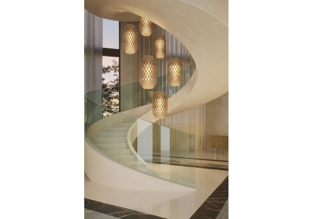 Chantal diseñada por Doriana y Massimiliano Fuksas para Slamp es una lámpara de suspensión con cilindros concéntricos en Cristalflex® o Lentiflex®. El difusor tiene una superficie perforada y protege una fuente de luz LED de filamento regulable. Chantal está disponible en diferentes acabados.