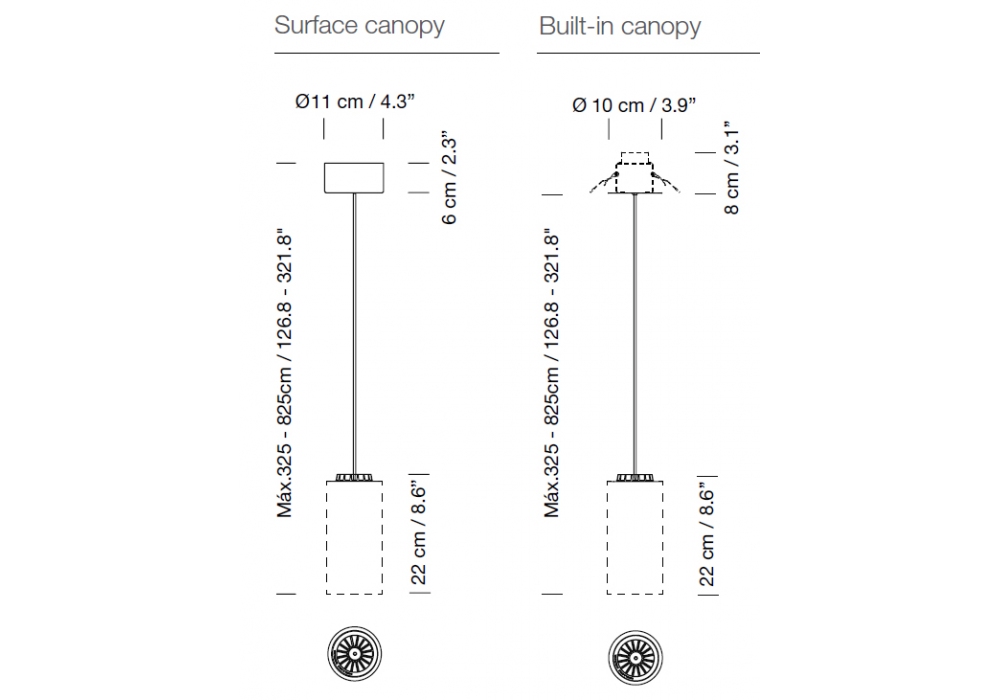 | Dimensiones | Ø 10/11 x H max 325 - 825 cm |