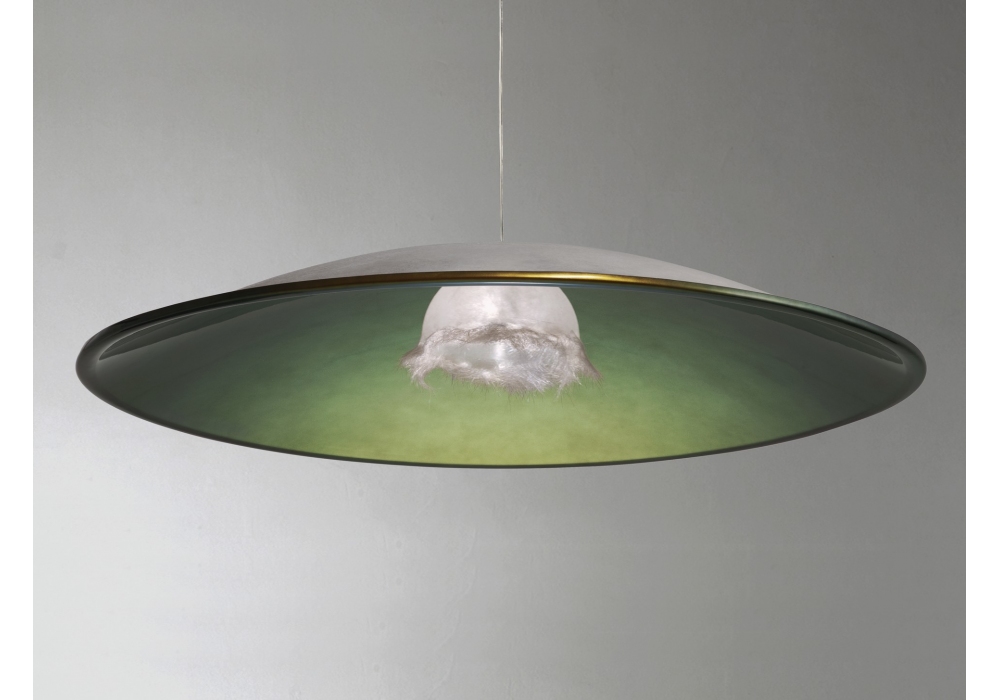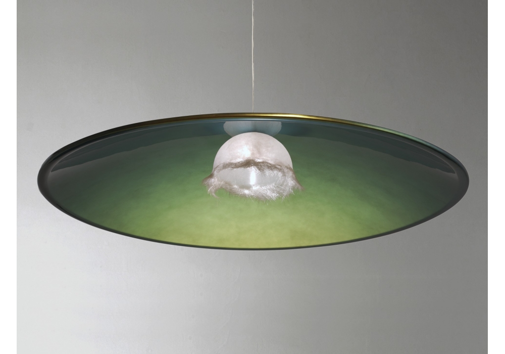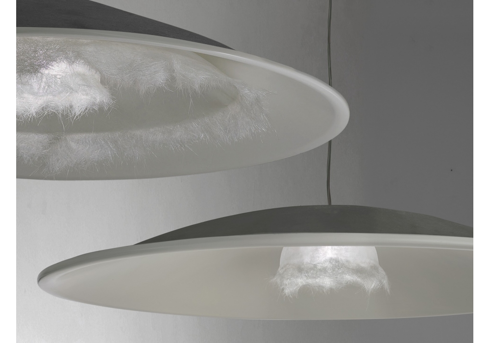 Flora diseñada por ImperfettoLab es una lámpara de suspensión realizada en fibra de vidrio, disponible en diferentes acabados.