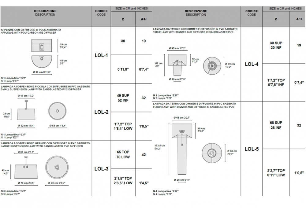 | Dimensiones | - Ø 52 x H 32 cm; - Ø 70 x H 42 cm. |