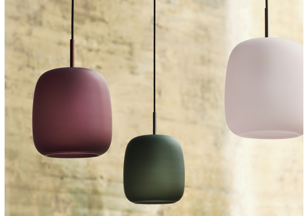 Maluma™ diseñada por Fumie Shibata para Fritz Hansen es una lámpara de suspensión realizada con pantalla de vidrio esmerilado de color soplado a mano y cable textil a juego. Disponible en diferentes acabados.