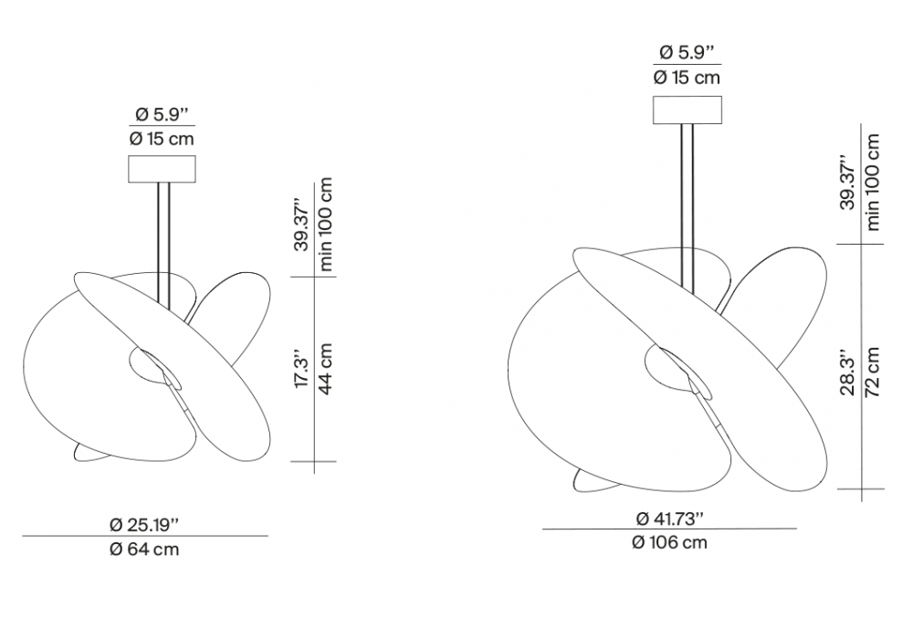 | Difusor | Ø 64 x H 44 cm; Ø 106 x H 72 cm. |