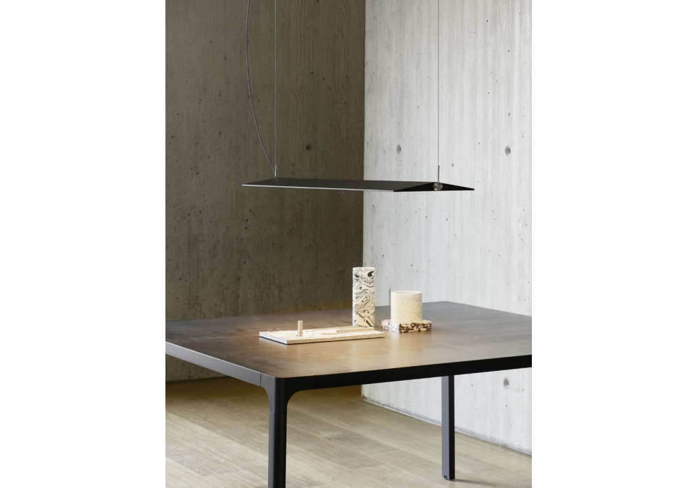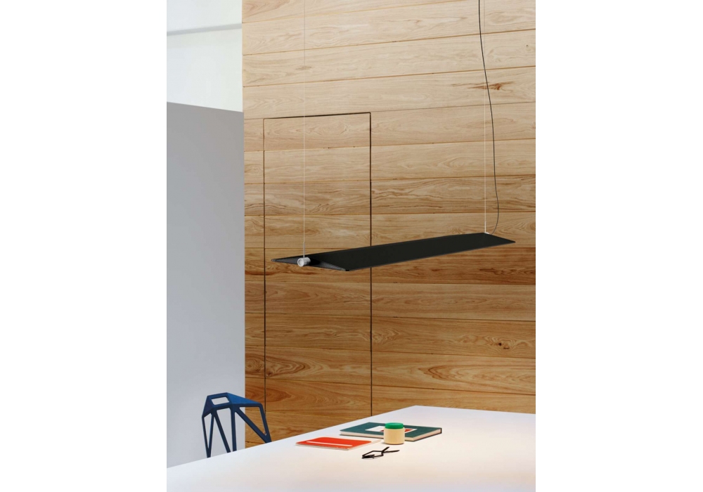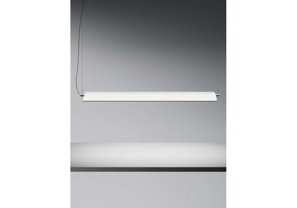 Fienile diseñada por Daniel Rybakken para Luceplan es una lámpara de suspensión con estructura en aluminio blanco o gris oscuro y pantalla de PMMA.