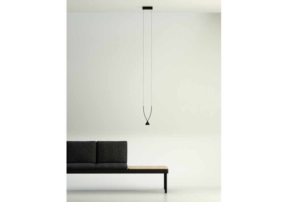 Jewel diseñada por Yonoh para Axo Light es una lámpara de suspensión realizada en aluminio con un arco de nylon cargado con vidrio reciclado. Disponible en diferentes modelos.