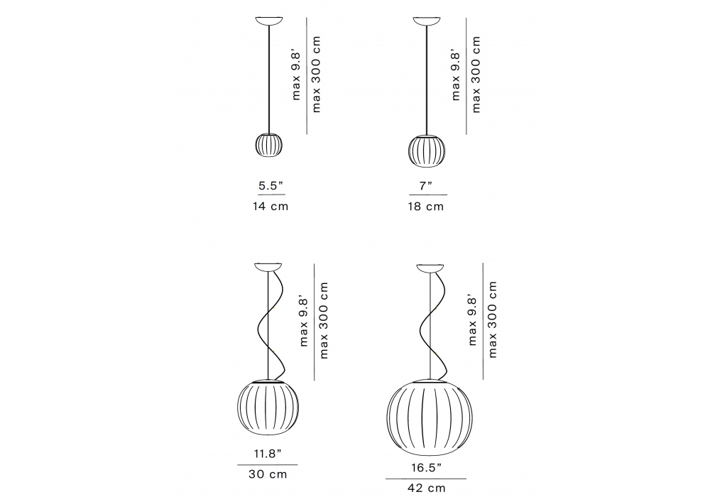| Diámetro | Ø 14 cm; Ø 18 cm; Ø 30 cm; Ø 42 cm. |