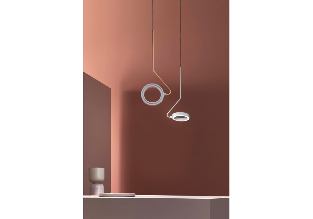 Meta diseñada por Franco Zavarise para Zava es una lámpara de suspensión realizada en hierro y aluminio. Disponible en diferentes versiones y acabados.