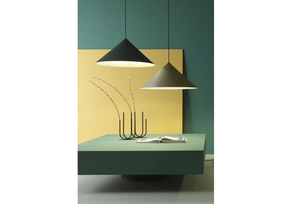 Jeena A diseñada por Franco Zavarise para Zava es una lámpara de suspensión realizada en hierro pintado mate. Es posible personalizar el interior del difusor con un acabado a juego, bicolor u hoja. Disponible en diferentes acabados, dimensiones y versiones.