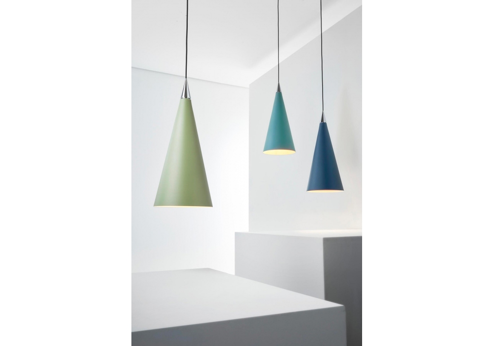 Jeena B diseñada por Franco Zavarise para Zava es una lámpara de suspensión realizada en hierro pintado mate. Disponible en versión On/Off o DALI/Push.