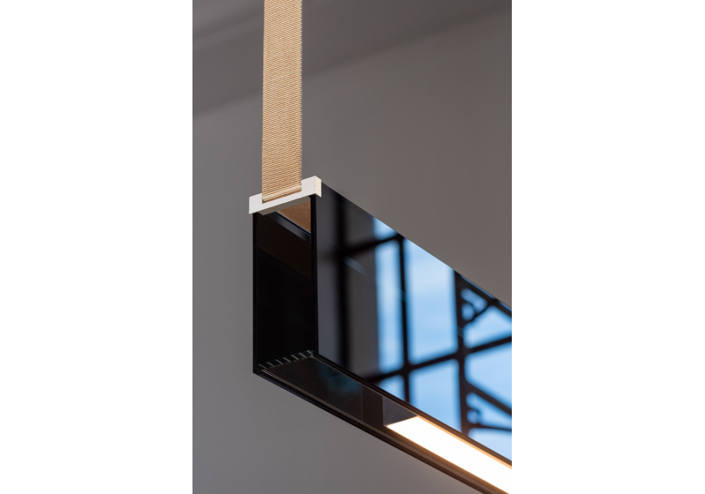 Sainte 21 diseñada por Rachel Bussin para Lambert & Fils es una lámpara de suspensión realizada en aluminio pulido con sistema de anclaje a techo en acrílico laminado poliéster y difusor en PMMA satinado. Disponible en diferentes acabados.