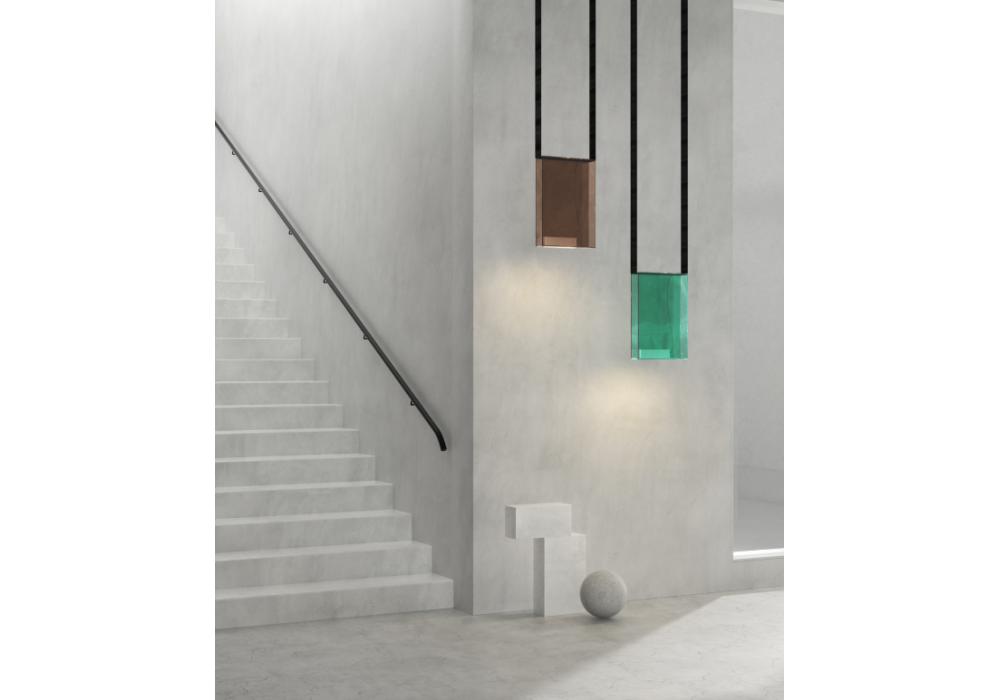 Sainte 23 diseñada por Rachel Bussin para Lambert & Fils es una lámpara de suspensión realizada en aluminio pulido con sistema de anclaje a techo en acrílico laminado poliéster y difusor en PMMA satinado. Disponible en diferentes acabados.