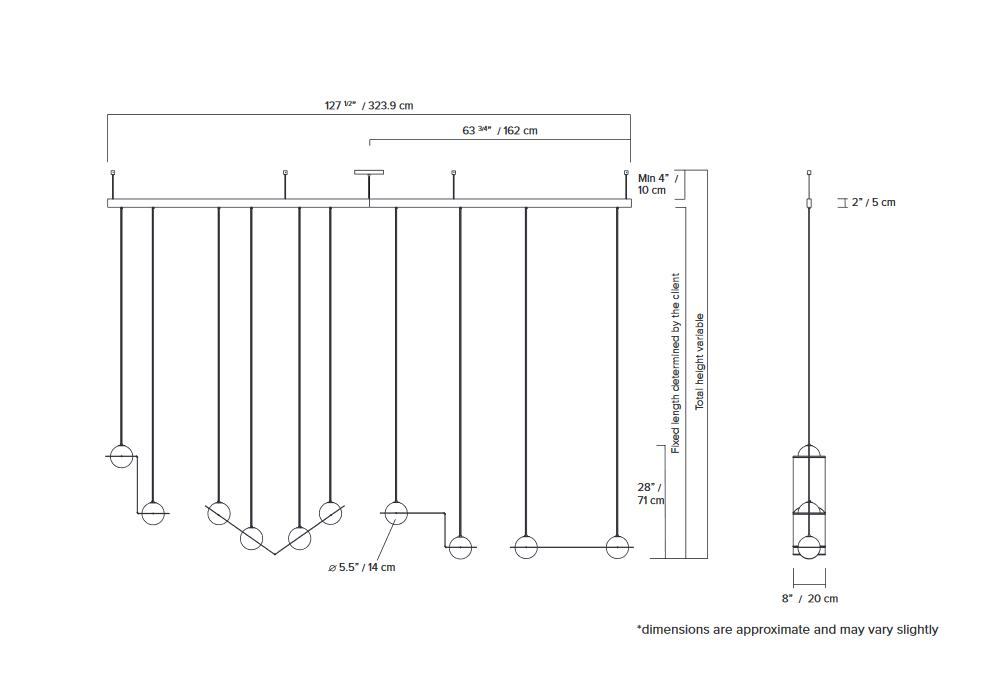 Laurent 16 diseñada por Guillaume Sasseville para Lambert & Fils es una lámpara de suspensión LED. La estructura es de aluminio pintado en polvo o de latón y globo de cristal soplado opal. Disponible en diferentes acabados.