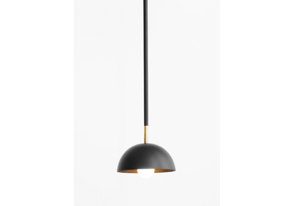 Beaubien 03 diseñada y producida por Lambert & Fils es una lámpara de suspensión con pantalla en aluminio pintado en polvo, tija y cúpula en acero pintado en polvo, difusores de cristal color leche.