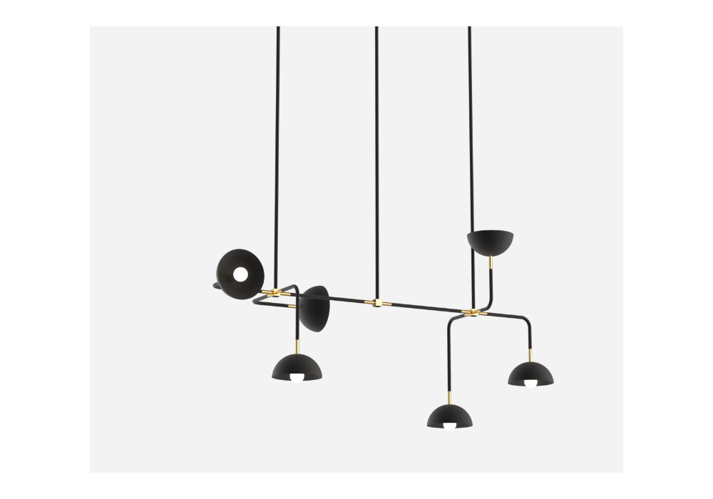 Beaubien 08 diseñada y producida por Lambert & Fils es una lámpara de suspensión en acero pintado en polvo y cuerpo en aluminio o latón, difusores de vidrio color leche y cordón de vinilo. Disponible en diferentes acabados y medidas.
