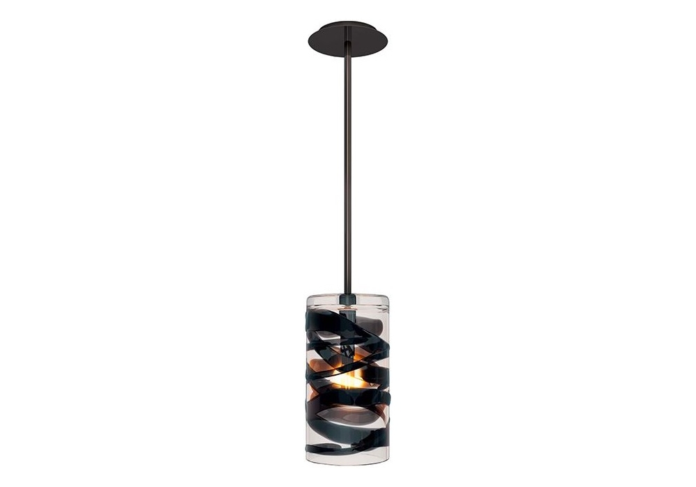 Cilindro diseñada por Peter Marino para Venini es una lámpara de suspensión con difusor soplado en bandas y estructura en metal níquel negro. Disponible en diferentes tamaños.