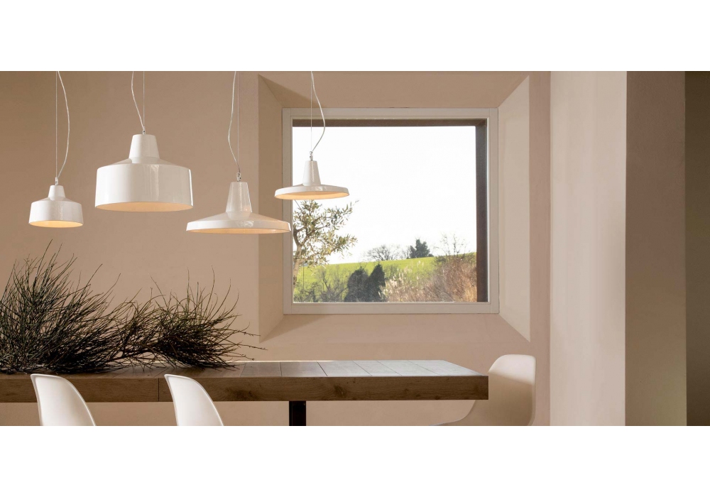Gangster diseñada por Matteo Ugolini para Karman es una lámpara de suspensión con roseta en metal blanco brillo y estructura en cerámica en dos acabados diferentes. Bombilla no incluida.