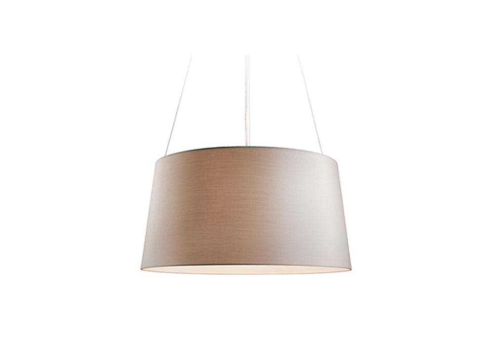 Tripod diseñada por Cristophe Pillet para Kundalini es una lámpara de suspensión con estructura en metal pintado de blanco. Pantalla en tela ignífuga cerrada por un disco de metal microperforado y pintado. Disponible en diferentes acabados.