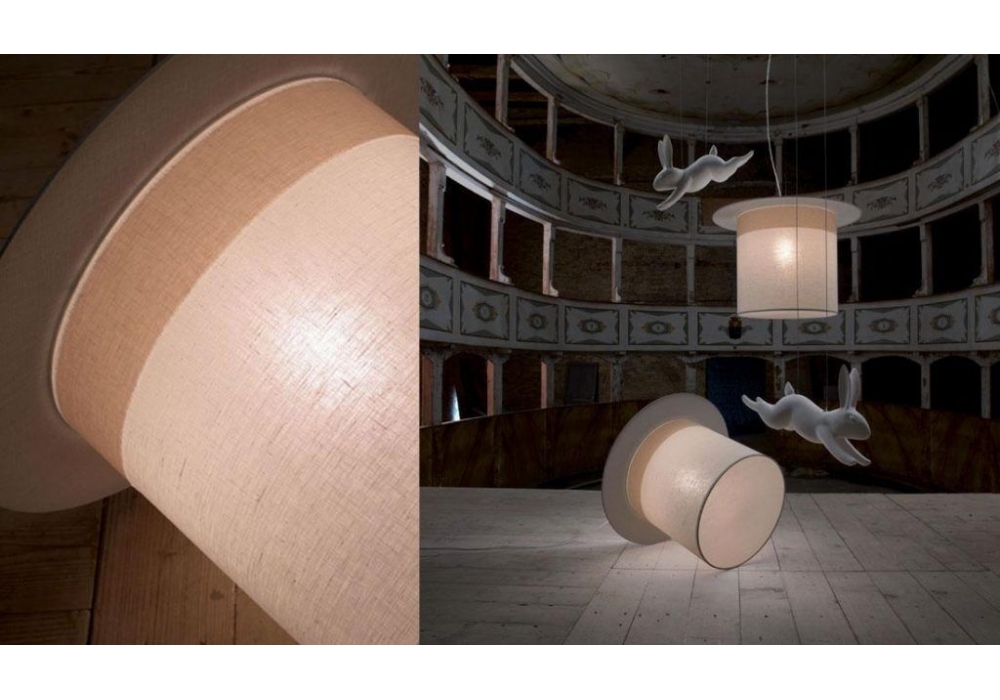 Wow diseñada por Matteo Ugolini es una lámpara de suspensión en lino blanco con rosetón en metal blanco brillante. Uso interno. Bombilla no incluida.