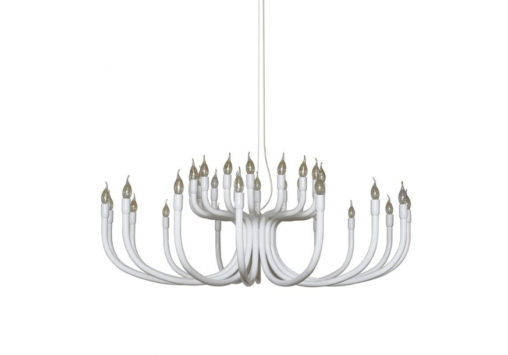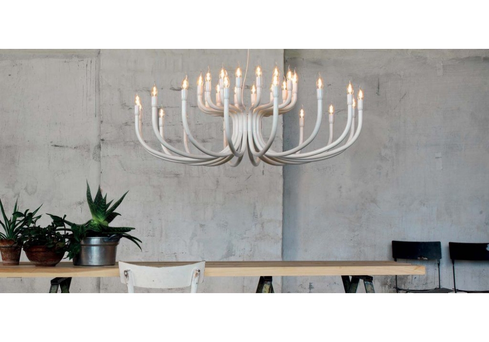 Snoob diseñada por Matteo Ugolini para Karman es una lámpara de suspensión con estructura en aluminio blanco o negro y florón de metal en el mismo acabado. Disponible en diferentes tamaños. Uso interno. Bombilla no incluida.