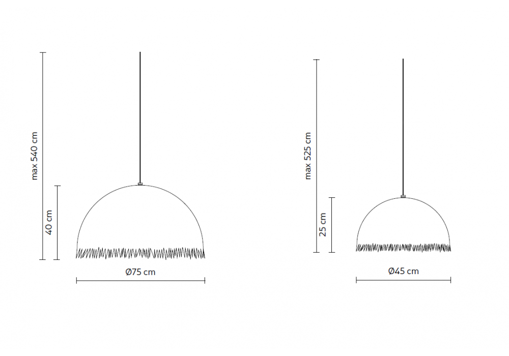 | Dimensiones | • Ø 45 x H 25 cm (Hmax 525 cm); • Ø 75 x H 40 cm (H max 540 cm) |