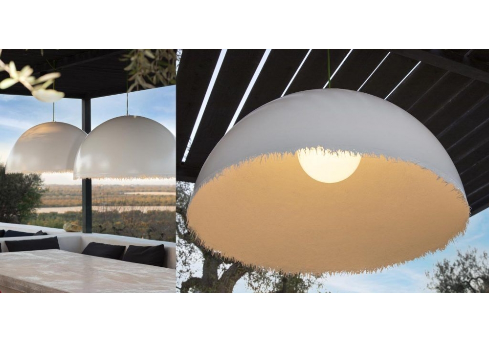 Plancton Outdoor diseñada por Matteo Ugolini para Karman es una lámpara colgante LED de fibra de vidrio blanca para exteriores disponible en 2 dimensiones. LED incluido.