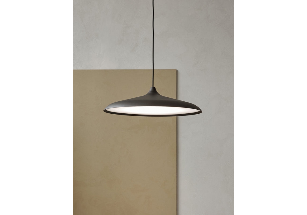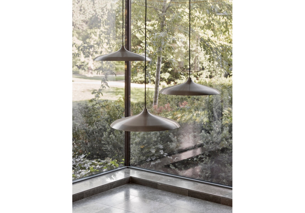 Circular diseñada por Studio WM para Audo Copenhagen es una lámpara de suspensión realizada en aluminio anodizado o pintado en polvo con acabado negro.