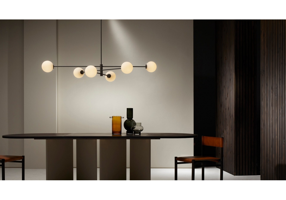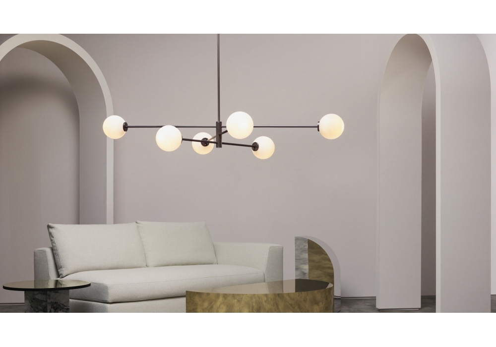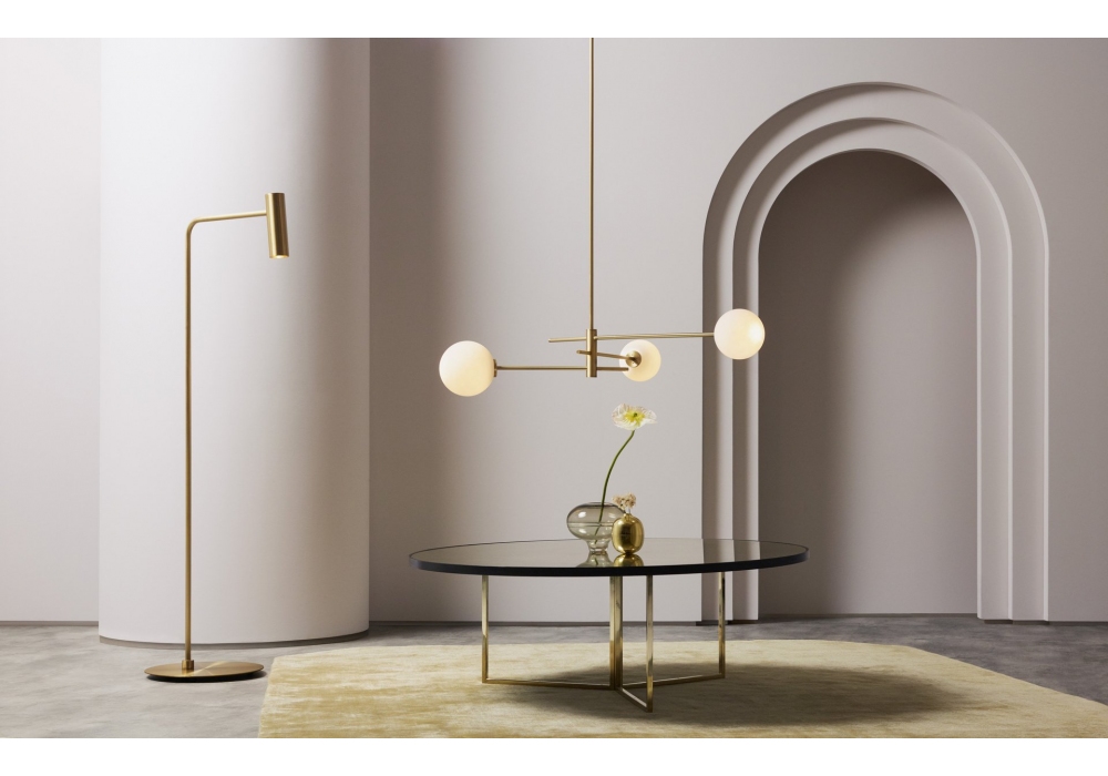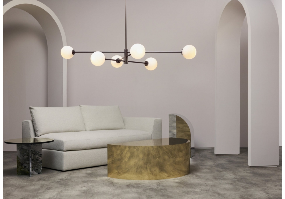 Trevi diseñada por CTO Lighting es una lámpara de suspensión realizada en bronce o latón satinado, difusores en cristal opal mate. Disponible en 2 dimensiones.