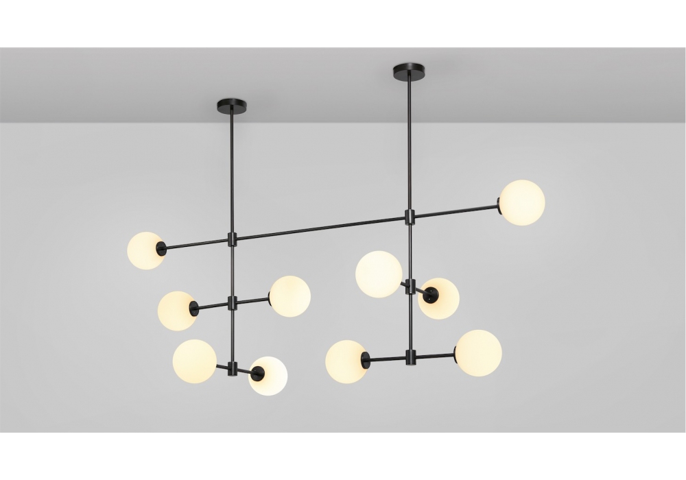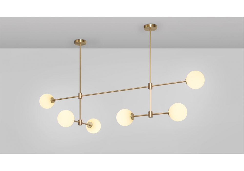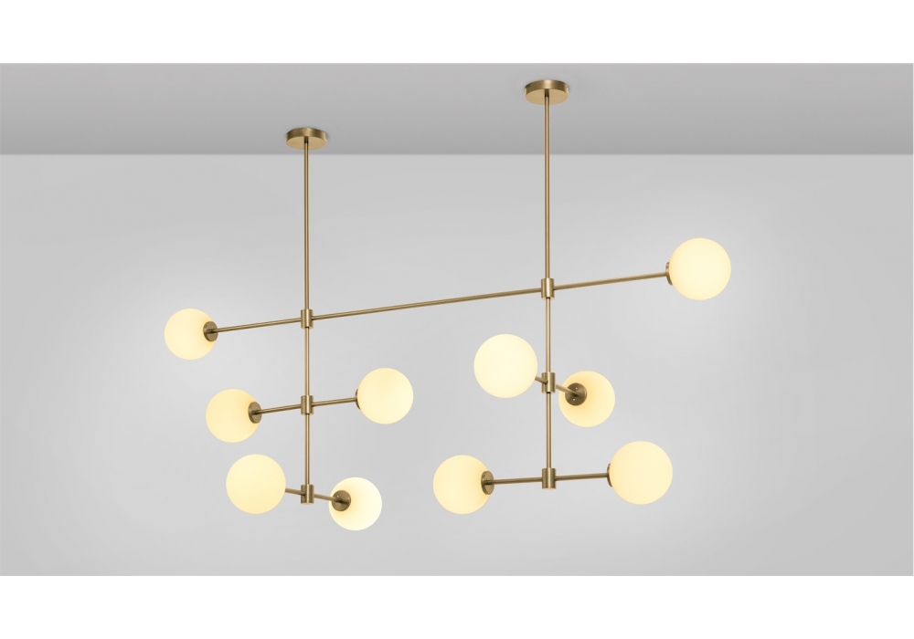 Trevi Multi Arm diseñada por CTO Lighting es una lámpara de suspensión realizada en bronce o latón satinado, difusores en cristal opal mate. Disponible en 2 dimensiones.