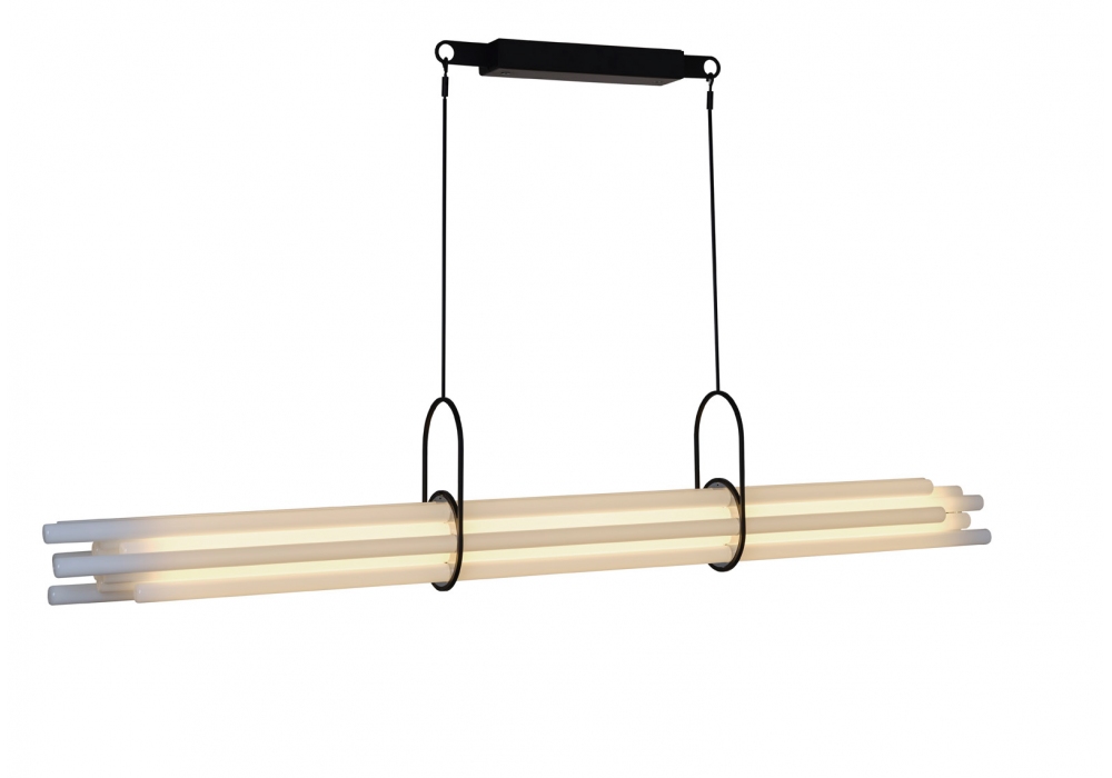 NL12 diseñada por Sebastian Summa para DCW Éditions es una lámpara de suspensión formada por 12 tubos de vidrio borosilicato.