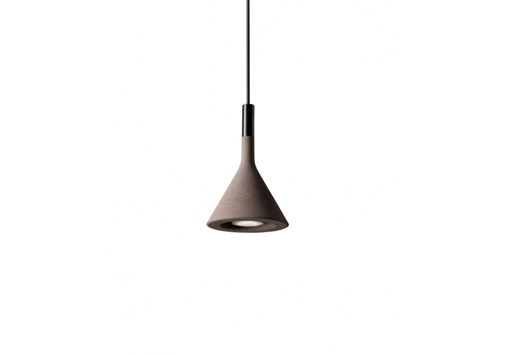 Aplomb Mini diseñada por Lucidi e Pevere para Foscarini es una lámpara de suspensión en hormigón moldeada a mano y pintada en varios acabados, con un cuello de soporte de aluminio. Utiliza un casquillo GU10 como fuente de luz.
