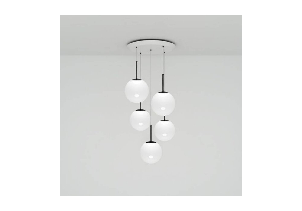 Globe Mini diseñado por Tom Dixon es un sistema de suspensión formado por 5 esferas de policarbonato, disponibles en diferentes acabados.