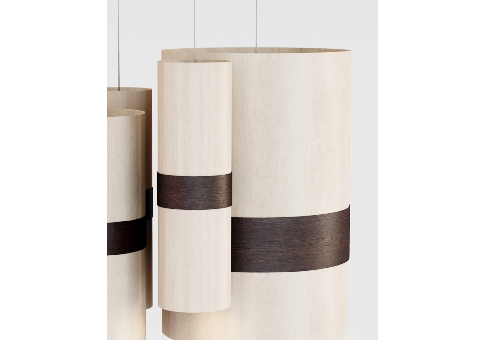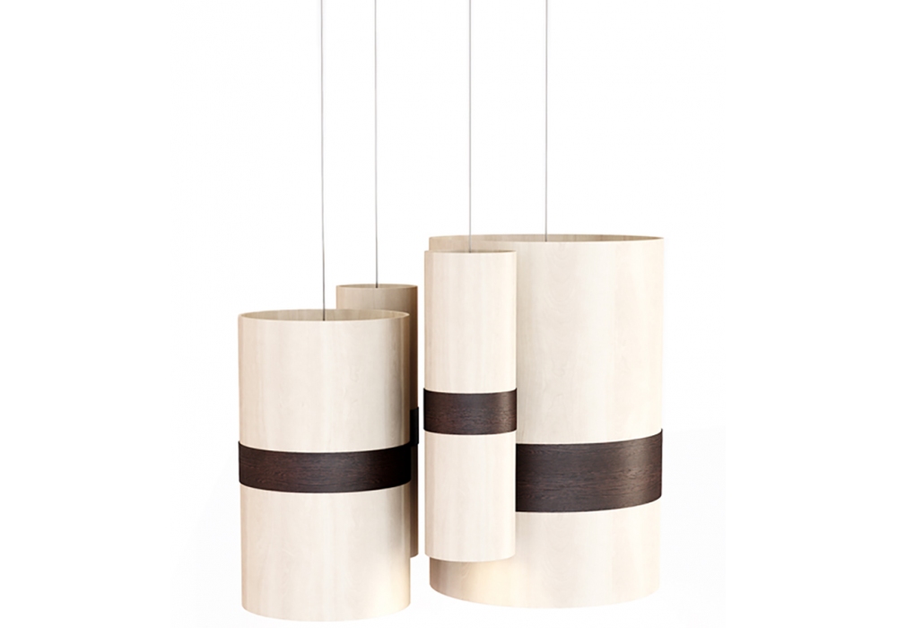 Do Re Mi diseñada por Elena Pancaldi para Emmemobili es una lámpara de suspensión realizada en madera contrachapada curvada decorada con una banda en contraste, también en esencia. Elementos cilíndricos de diferentes diámetros y alturas, que se pueden utilizar individualmente o combinados entre sí. Versión regulable disponible bajo pedido y con recargo.