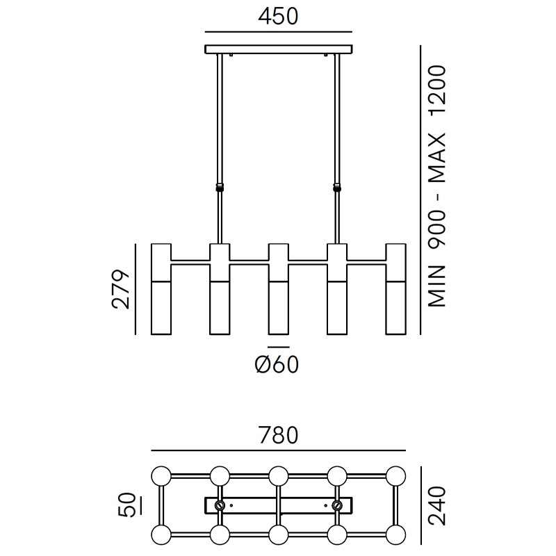 | Florón | Ø 10 cm; 45 x 5 cm; Ø 6,5 cm. |