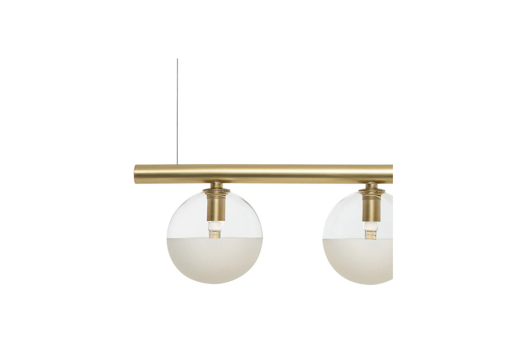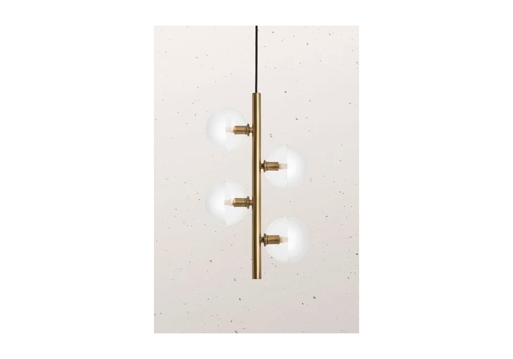 Molecola 275.12 diseñada por Fabrizio Fava para Il Fanale es una lámpara de suspensión con acabado en latón natural o bruñido y difusor de vidrio.