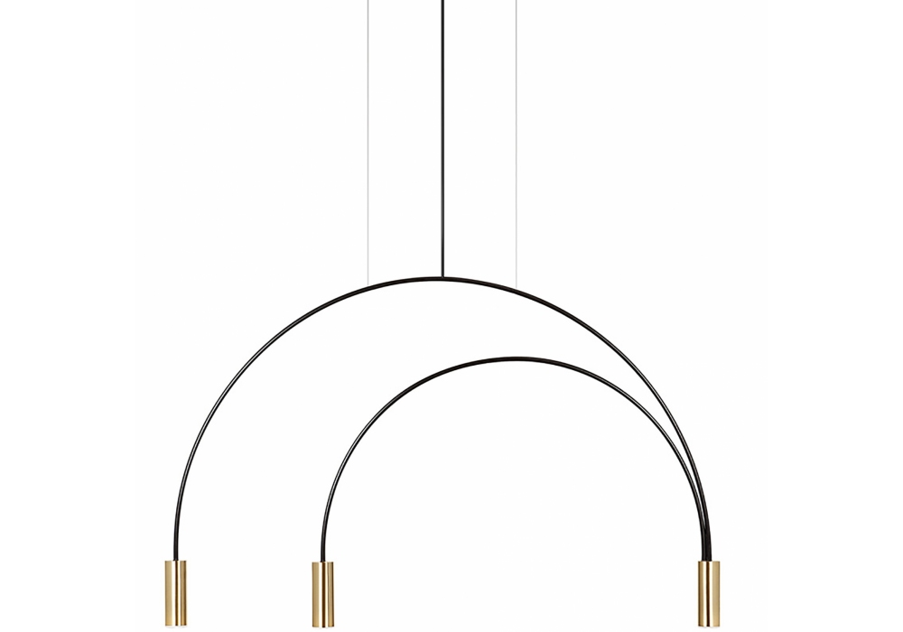 Volta Arc diseñada por Nahtrang Studio para Estiluz es una lámpara de suspensión con plafón cuadrangular y estructura arqueada en aluminio pintado. La pantalla es de aluminio cilíndrico con lente de PMMA que apantalla una fuente de luz tipo LED con sistema triac dimmer. Volta está disponible en diferentes modelos, acabados y tipo de gradación de la fuente de luz.