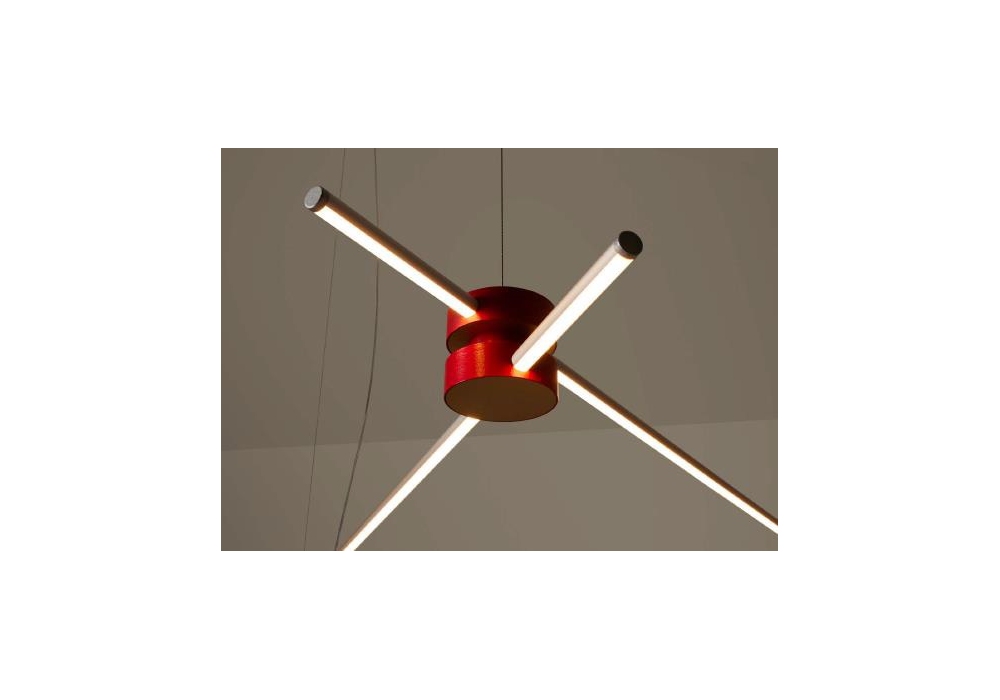 EITIE Triangle Horizontal diseñada por Tobia Scarpa para Cassina es una lámpara de suspensión realizada en aluminio y PC, con juntas de metal lacado en diferentes acabados. Compuesto por tres tiras de LED.