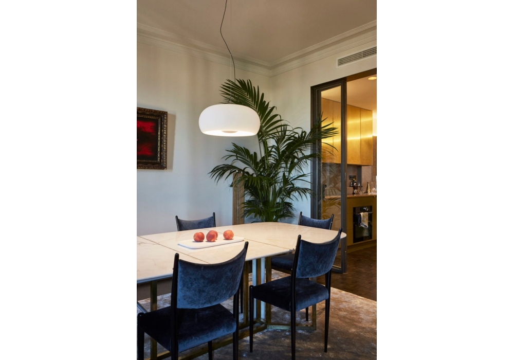 Vetra 43 diseñada por Joan Gaspar para Marset es una lámpara de suspensión realizada en aluminio y pantalla de vidrio soplado. Disponible en diferentes acabados.