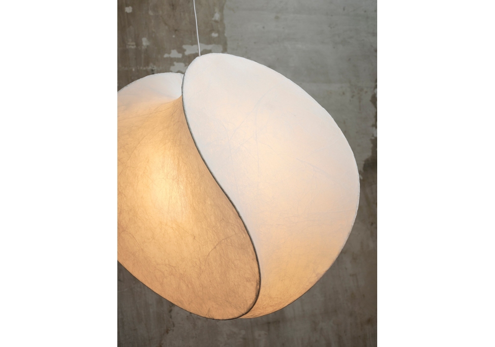 Equinox diseñada por Studiopepe para Tacchini es una lámpara de suspensión con difusor de fibra de vidrio, disponible en 2 tamaños.