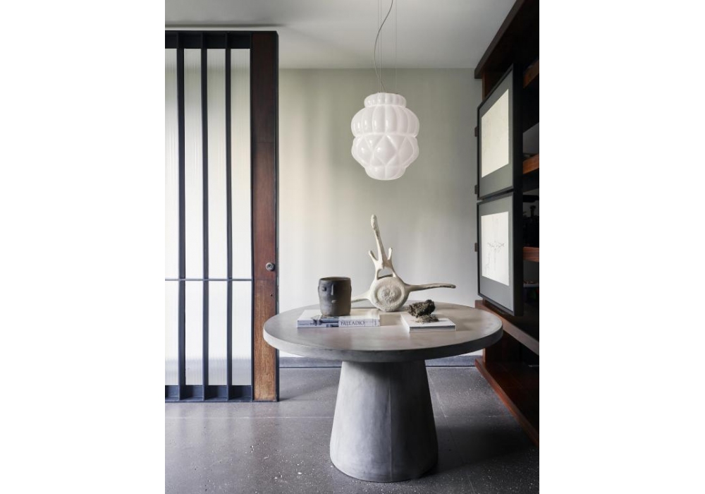 Vallonné Opale diseñada por Luca Nichetto para Barovier & Toso es una lámpara de suspensión con estructura portante y rosetón en metal cromado negro o bronce miel. El difusor tiene forma redondeada en cristal veneciano opal y adopta una fuente de luz LED o halógena regulable. Vallonné Opale está disponible en diferentes modelos y acabados.
