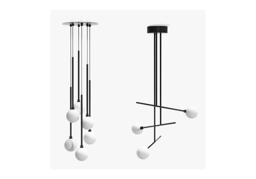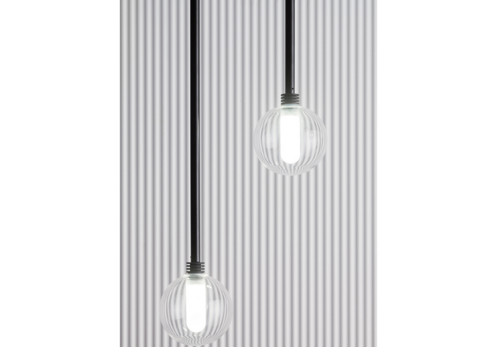 Brillo diseñada por Alessio Bassan para Capodopera es una lámpara de suspensión de luz difusa con difusor en vidrio Pyrex transparente u opal. La estructura es de metal con recubrimiento de polvo negro mate.